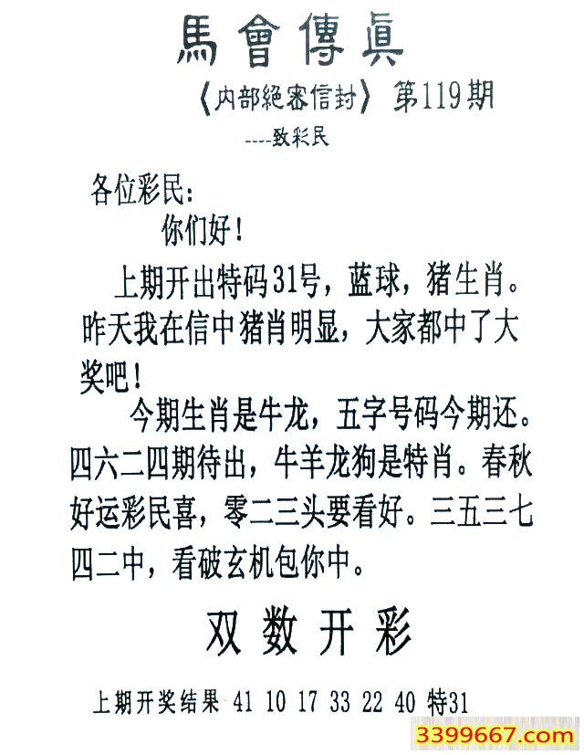 | 主题 :119期:首发推荐:≮馬會傳眞≯→(香港正版) |