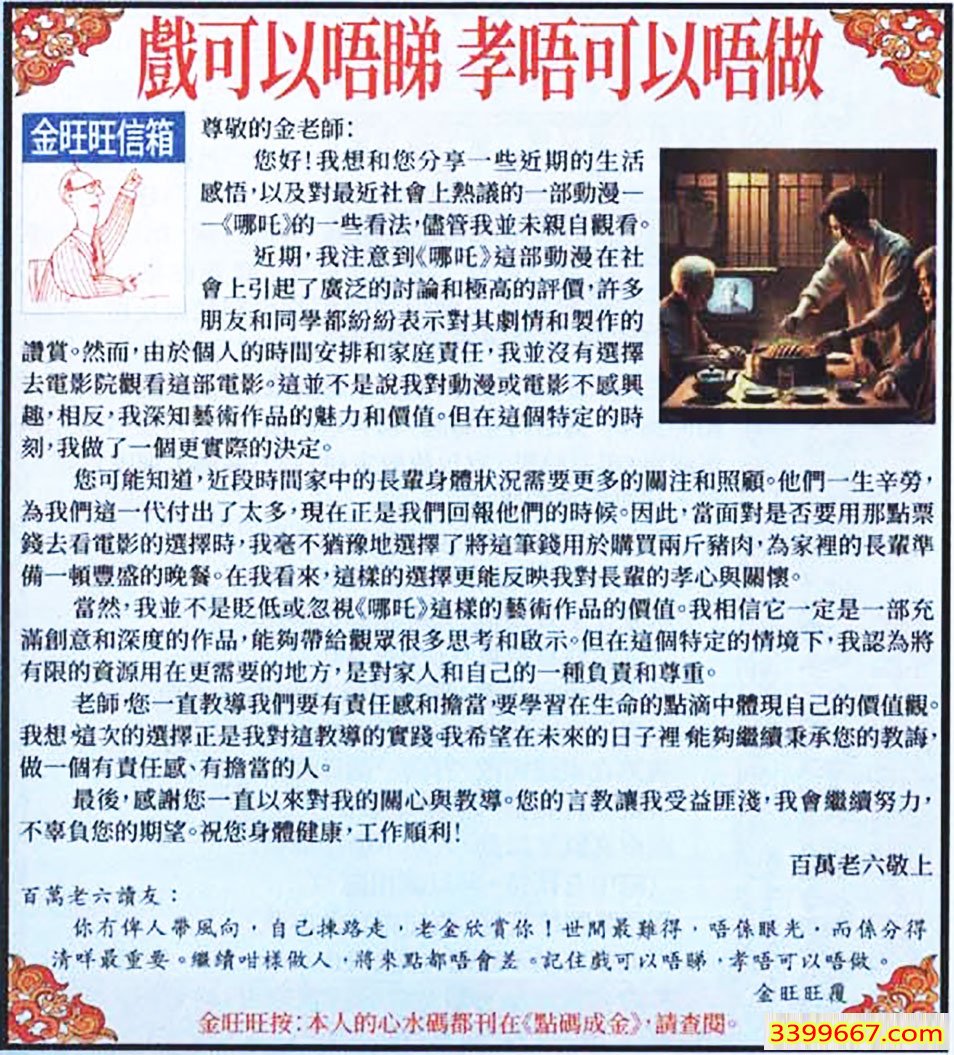 | 主题 :011期:金旺旺信箱彩民推荐→→《戲可以唔睇 孝唔可以唔做》 |