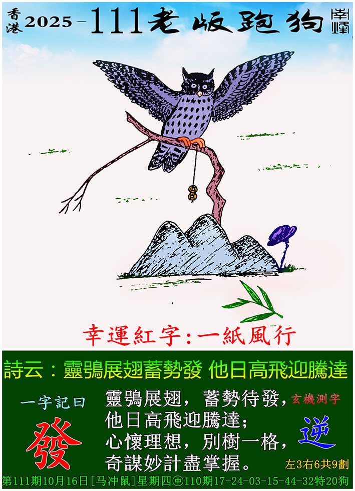 | 主题 :111期老版跑狗一字記之曰:【發】 玄機測字:《逆》 |