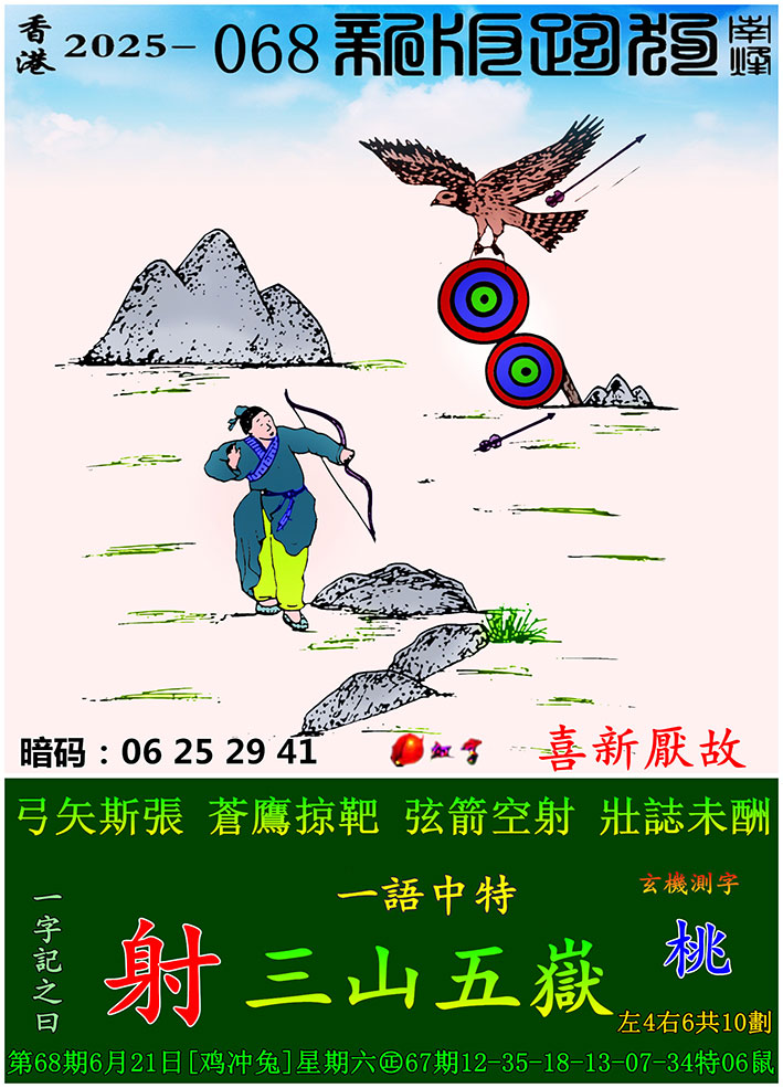 068期:新版跑狗一字記之曰【射】 玄機測字:【桃】