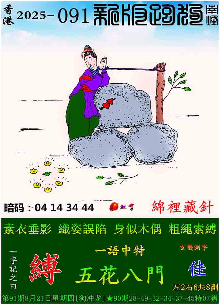 | 主题 :091期:新版跑狗一字記之曰【縛】 玄機測字:【諒】 |