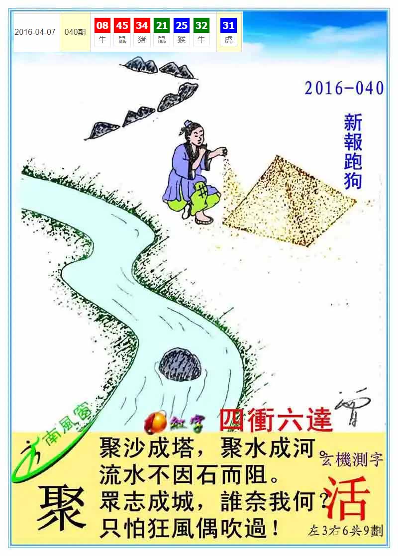 | 主题 :107期:新版跑狗一字記之曰【堆】 玄機測字:【墁】 |