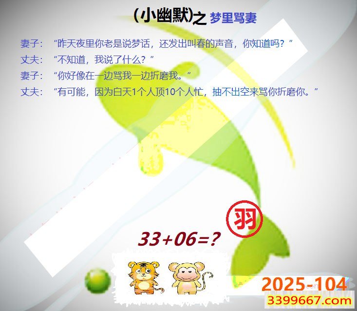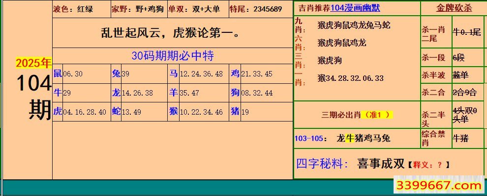 主题 :104期:小鱼儿30码期期中+幽默猜测