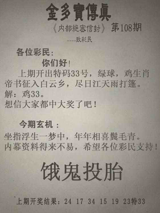 108期:另版【金多寶傳真】