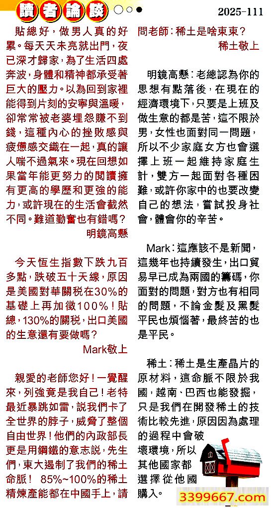 第一一一期讀者論談