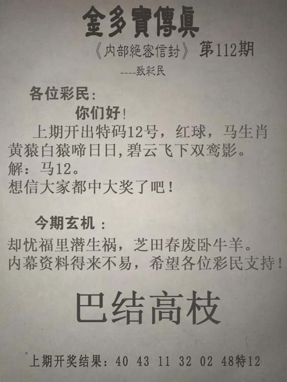 | 主题 :112期:另版【金多寶傳真】 |